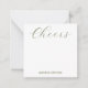 Personalized stationery enclosure notecard with a green gingham pattern in notes of deep forest sage olive garden green with the sentimental words "Cheers". Tuck it into a flower bouquet or meaningful gift. These minimal flower shop inspired enclosure cards bring a retro kitchen vibe to your most thoughtful moments.