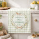 A charming personalized newlywed wedding design featuring a soft green gingham background and a delicate botanical wreath with cozy kitchen-inspired details. This timeless, cottage-style artwork is perfect for celebrating a new beginning together, whether as a wedding gift, anniversary keepsake, or housewarming surprise. Customize with the couple’s names and year to create a meaningful, everyday favorite that blends rustic warmth with classic elegance.