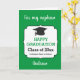 This is a personalized nephew graduation card designed in green. You can easily personalize this happy graduation card with his name, class of 20xx and the student's school. The inside card message can also be personalized and the graduation year can be personalized on the back. This graduation card for nephew would make a wonderful card keepsake to mark an important milestone.
