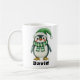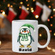 Spread Christmas cheer with this Personalized Green Hat Penguin Custom Name Mug! This charming Christmas coffee mug features an adorable penguin wearing a cozy green Santa hat and a stylish green and white striped scarf. Easily customize it with any name to make it a unique and delightful holiday gift for friends, kids, or any penguin lover.