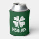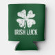 Personalized green St Patricks Day can cooler. Green St Patricks Day can coolers | Personalizable with name and / or funny quote like Irish Luck. Vintage design with four leaf clover / Irish shamrock. Cool drinking gift idea for St Paddys Day party. Distressed look.