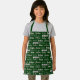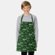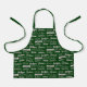 A festive green Christmas apron decorated in nine different fonts spelling your last name in white. Cute custom kids gift with fun typography.