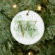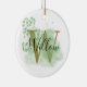 Personalized Green Watercolor & Floral Initial Ceramic Ornament