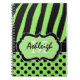 This monogrammed lime green, white, and black zebra stripes and polka dots notebook has template boxes for you to add your name, monogram, or other text. If you need help customizing this item, please email niteowlstudio@gmail.com for assistance.