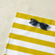 Striking cabana stripe beach towel with Green Yellow and white striped pattern. Personalize with your name.