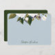 Personalized Greenery Leaves Watercolor Light Blue Note Card. Space for your personalized name in a custom classic modern script font.