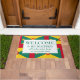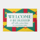 Personalized GRENADA Welcome Doormat. Stylish, patriotic WELCOME doormat with the wording WELCOME & BE BLESSED ALL WHO ENTER HERE plus placeholder name. The background is the ISLAND OF SPICE flag of GRENADA & CARRIACOU. All text is CUSTOMIZABLE so you can amend the wording to suit your needs, eg. add family name, family motto, inspirational quote.