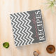 Personalized grey and coral pink chevron zigzag pattern recipe binder cook book. Custom cookbook with personalizable name, pretty zig zag pattern print and elegant label. Cute personalized cooking / baking gift idea for women; ie mom, mother, sister, wife, aunt, grandma, chef etc. Stylish zigzag stripe design with chic script typography.