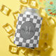 Personalized grey and white Chequerboard Pattern Can Cooler