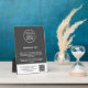 Personalized Grey Business Logo QR Code Tabletop Sign. This customizable plaque is designed to cater to your unique business informational needs. Perfect for showcasing your business logo and information, this template incorporates a QR code for promotions or any other information you like to showcase