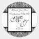 Add the finishing touch to your wedding favours with these personalized wedding favour labels or gift tags. These wedding gift stickers feature a black damask pattern on a grey background.You can easily customize the text and initials on the product order page.