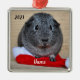 Personalized Grey Guinea Pig Santa Hat Metal Ornament