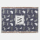 Adorable woodland creatures pattern in hues of grey over a dark midnight blue grey background with your choice of monogram letter in the centre.