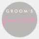 Personalized Groom's Favourite Pink Grey Grey Classic Round Sticker