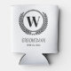 An old-fashioned can cooler with a classic shape. The cooler is enabled to personalize with name or initials of the groomsmen, along with a wedding or bachelor party date. A personalized gift for celebrating and toasting on the Special day!