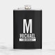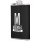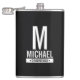 This design features personalized groomsman's monogram, name and title in white modern bold sans serif font style on black background.