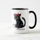 Add a personal touch to your morning routine with this hilarious grumpy black cat mug! Featuring a cute cartoon-style cat with a red polka-dot bow and a steaming coffee cup, this design perfectly captures the mood of those early mornings. Personalize it with your name or the name of someone special to make it a unique and funny gift. Ideal for cat lovers, coffee enthusiasts, and anyone who loves a bit of sarcasm with their caffeine!