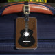 Black image of an acoustic guitar with custom name on it, on red... for your next concert tour