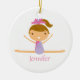 This girl's ceramic round ornament has a cute design of a brown hair girl doing a split. You can customize the name to your own! ©2010 JD Digi Designs