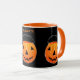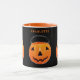 Creative Halloween party mugs or gifts featuring cute Jack-o'-lantern pumpkins. To personalize edit text to add her or his name.