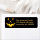 Personalized Halloween Return Address Labels featuring an illustration of a grinning pumpkin or jack-o-lantern. Ready to personalize with your family's name and address.