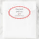 This personalized oval sticker features a pink ruffled edge and a ribbon stitched border and a coordinating black and pink open heart design. Perfect for your handmade goodies, crafts, gifts, candy bags, jars, cans, gift boxes, party favours and more! Stand out with these unique custom sticker seals. Click the "Customize it!" button to change the text size, text colour, font style and more! Please note: the ribbon stitch border is a ribbon stitch appearance.