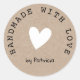 A stylish handmade with love sticker for your homemade gifts with a cute white heart print on kraft paper background. Personalize with your name.