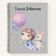 A boy and a rabbit float to space on balloons. Customizable so you can change colours and personalization. You choose interior paper but we had handwriting practice paper in mind for a pre-k student to practice handwriting.