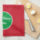 Put a smile on any holiday baker's face with this red & white Swiss dot with green accent kitchen towel. Easily personalize and change the text using the Template provided. This large 16"x24" towel is 80% durable woven polyester/ 20% polyamide blend microfiber. Great for drying and machine washable. Made to last a lifetime. Click "Create your own.." to start from scratch. See "About This Product" at side for additional information.