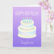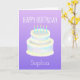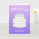 This birthday card features the words "Happy Birthday" on the front with a cute and girly birthday cake artwork and a personalized custom name. The inside reads "I hope your special day is filled with all the things you love. Happy Birthday!".