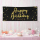 Personalized black and gold Happy Birthday banner with beautiful faux gold foil confetti graphic images and elegant casual brush script font Happy Birthday fixed text and customizable gold text on a black background. You can change the background colour within the editing feature if you desire. Modern, glamourous banners. If you need any assistance customizing your product please contact me via my store and I will be happy to help. PLEASE NOTE: These are flat printed graphic images - not real gold foil.