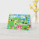 This cute hand drawn card, features a little boy and girl riding in a car with a general boy's theme of tools, tractors, trucks and cars.