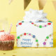 The design is of colourful orbit featuring the colours red, green, purple, yellow, and blue colours along with two (2) customizable typography fields for wish, which currently reads "Happy Birthday!" and name and date or other personalization.