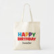 Personalized Happy Birthday tote bag. This tote is available in a variety of sizes, colours and styles. Select the "Customize It" button to add text, change the text size, font style and more!