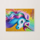 Celebrate a special birthday with our vibrant and colourful unicorn jigsaw puzzle. This playful design features a portrait of a happy unicorn with blue eyes and a rainbow mane. Personalize the puzzle by adding a custom name in pretty cursive script and a happy birthday message. As you solve the puzzle, the magical scene comes to life, making it a unique and thoughtful gift for any unicorn lover. With its personalized touches and joyful design, this puzzle is sure to bring a smile to any face on their special day.