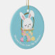 Personalized Happy Easter Bunny Baby Blue Ceramic Ornament