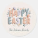 Add a festive and personal touch to your Easter gifts with these personalized Happy Easter family stickers, featuring soft pastel lettering and sweet spring details. Customized with your family name, these round stickers are perfect for Easter baskets, gift bags, treat boxes, party favors, and envelopes. A fun and easy way to coordinate your Easter décor and make gifts feel extra special.