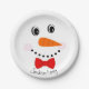 Personalized Happy Face Snowman Red Bowtie Paper Plate