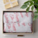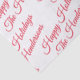 This red and white festive tissue paper is personalized with Happy Holidays or your own special holiday message and your name, making it a wonderful addition to a gift. It would be perfect to add just one sheet to a gift bag with some plain red or white paper.