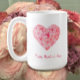 Customize my unique hand painted watercolor mug for a sweet Mother's Day gift. I had fun painting these blush pink and peach loose roses in a heart shaped form. They are not perfect but they are loved, just like us. Simple, minimalist script says, "Happy Mother's Day". Add your mom's name to personalize this cute pink chic typography. You can also add a personal message by customizing the text that says, "We love you Mom" I hope you enjoy this simple, modern, trendy Mother's Day coffee mug. Share this mug with your mother, step mom, grandmother, or mother figure for a personalized Mother's Day gift. This cute original watercolor design will make anyone smile.