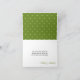 Crisscross shamrock and hearts pattern in green and white makes a pretty St Patrick's Day or Irish themed March wedding thank you card. It can be personalized with the names of the bride and groom on the front of the card. A pretty green and white polka heart pattern on the inside top of the card. Artwork on this custom shamrock wedding or bridal shower shower thank you note is © Chrissy H. Studios, LLC. All Rights Reserved.