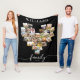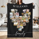 Create your own custom family photo collage blanket featuring 30 of your favourite pictures in a heart shaped scrapbook style design. Personalize with family name in modern elegant typography for a custom photo gift or home decor.