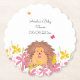 Raise glass to the new baby and create the perfect baby shower with personalized paper coasters. Featuring a baby hedgehog holding a tiny pink heart and nestled among cute pink and yellow flowers, this is a great choice for a summer baby shower.