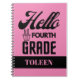 Personalized Hello Fourth Grade notebook. Personalized School Notebook is perfect for students. Customize it with your name for a chic girly unique look.