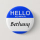 Sometimes that Hello My Name Is sticker is just not going to cut it, and you need a more permanent option. Well here is your very own Hello My Name Is round button pin in blue. One of the most recognizable name tags you have seen, customizable to your name. The eco-friendly option for social gatherings and meeting new people, because who can resist this classic tag.