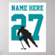 Personalized Hockey Player Number Teal hockey poster. Enter name and number to customize.