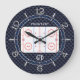 Personalized Hockey Rink Diagram Blue Carbon Style Large Clock