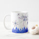 Personalized Christmas mug with watercolor snowflakes and icicles.