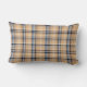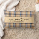 Personalized home sweet home throw pillow with a tan tartan plaid. Easy to change the family name using the personalize button (or omit to leave blank). Makes a great housewarming gift.