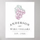 Gift your favourite wine lover with this personalized art proint featuring a cluster of grapes and grape leaves in a rustic vintage etched style. Personalize with your family name, "wine cellars" and year established.